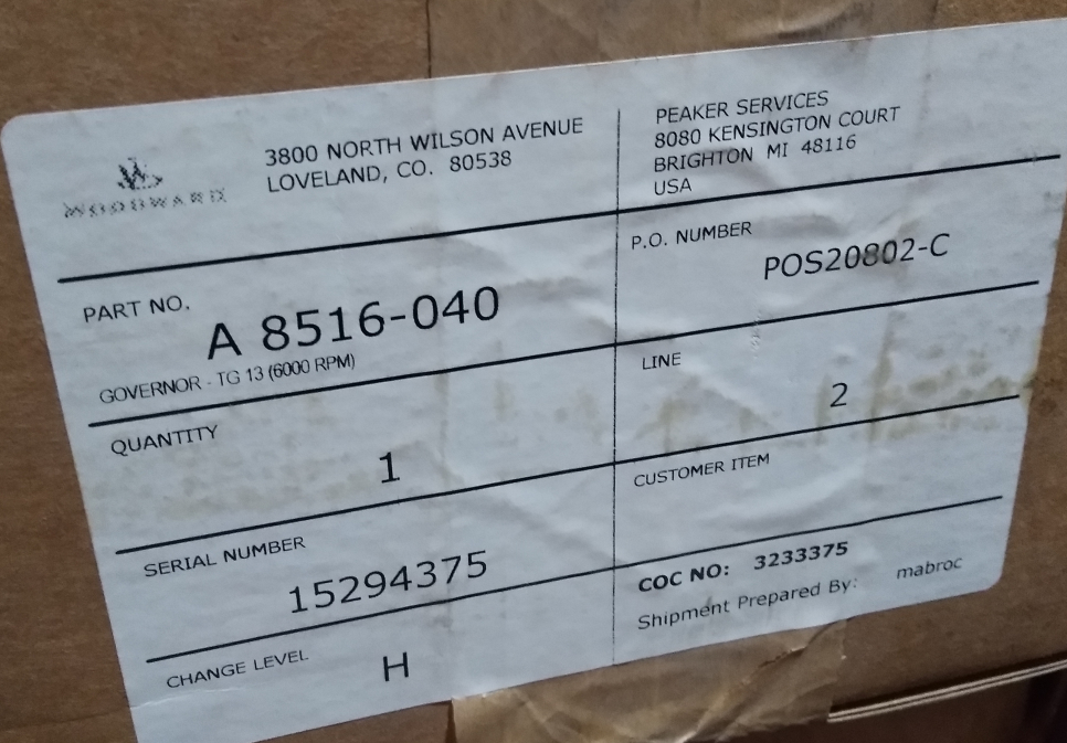 | পণ্যের নাম: | A8516-040 উডওয়ার্ড টিজি -13 গভর্নর | পণ্য মডেল: | A8516-040 |